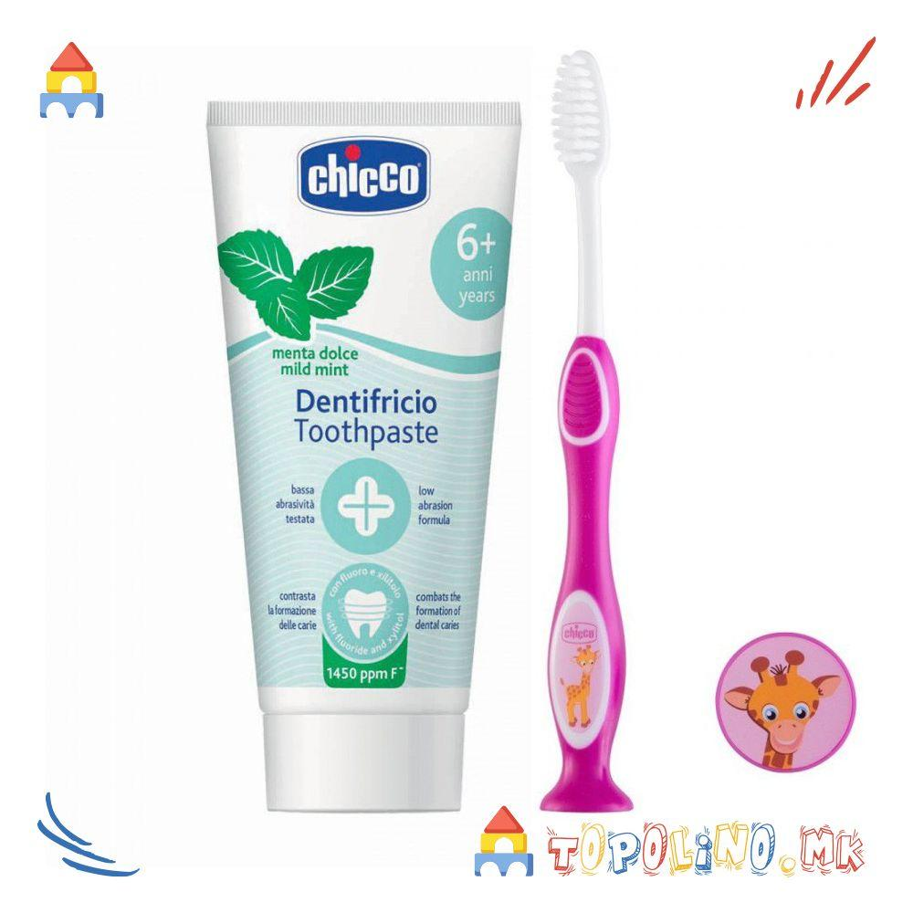 Сет Паста за Заби Ментол со Флуор 1450 ppm 50мл 6г+ Четка за Заби Д. – Chicco