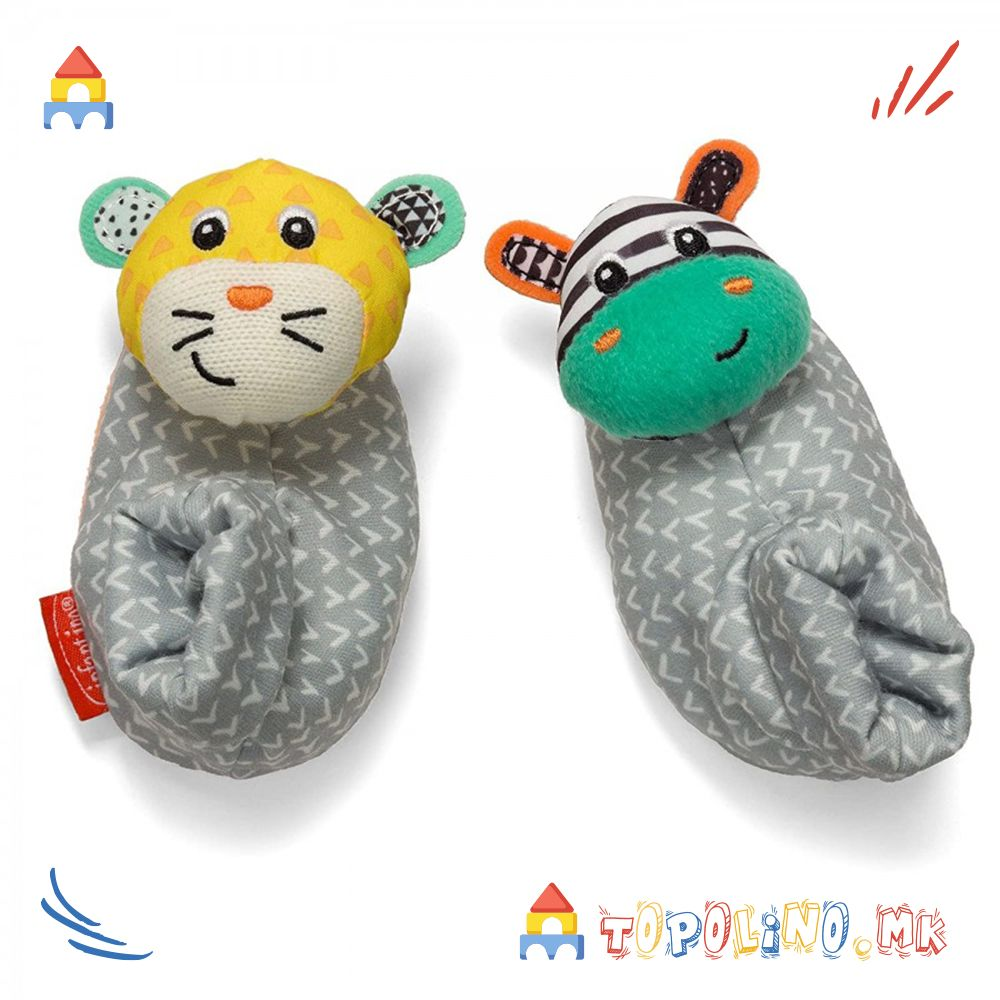 Забавни пријатели за нозе, ги охрабруваат малите да се тресат, да посегнат и да грабнат. Одлично за развивање на координација рака-око!