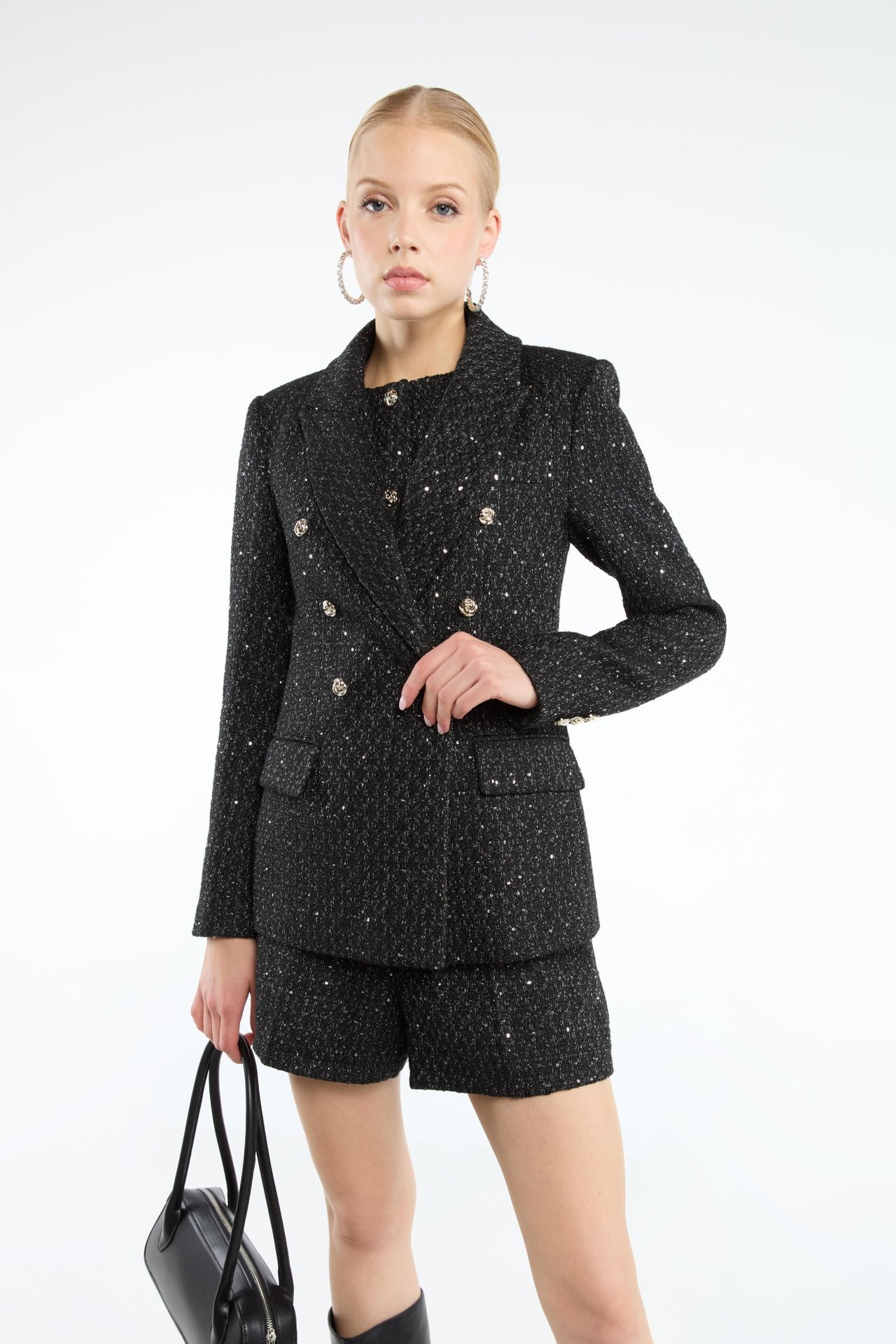 Outer Shell: 92% Polyester, 6% Cotton, 1% Viscose, 1% Polyamide | Lining: 100% Polyester | Sequins: 100% Polyester