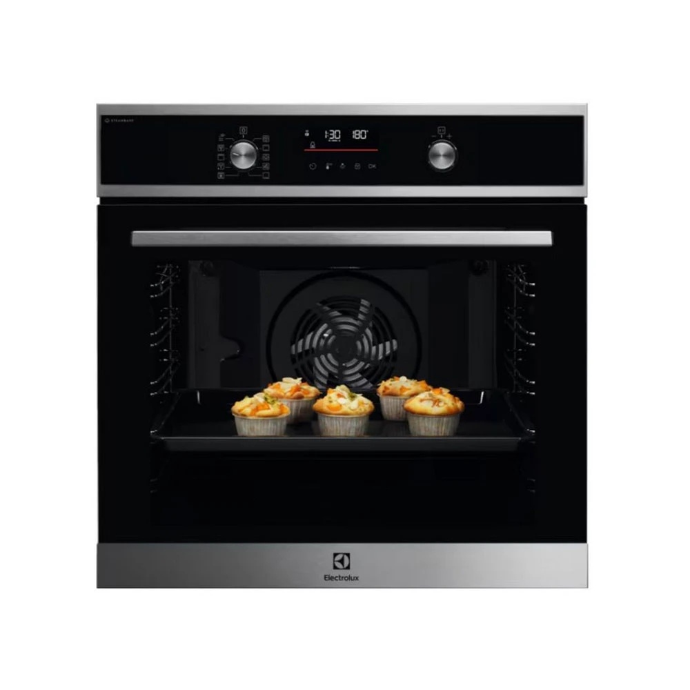 ELECTROLUX EOD6P66WX • SMART Вградна фурна INTUIT 600 Steambake серија • Црна/Инокс • Plus Steam Пареа • WIFI КОНЕКЦИЈА • Pop In/Out копчиња на вовлекување + контроли на допир • ЛЦД Дисплеј • Самочистење со ПИРОЛИЗА • Капацитет 72л • Вентилатор во фурна • Рамномерно распоредување на топол воздух во фурната • Меко затворање на вратата • Врата со тројно стакло • Тајмер со 5 сетирања • Електронско контролирање со 21 програми • 8 функции на рерната • Пица мод • Печење на три нивоа • Fast heat up – брзо загревање • Turbo Grilling • Инокс кој не остава отпечатоци • Звучна сигнализација за траење на програмата • Заклучување од деца • Електронско заклучување на вратата • Енергетска класа А+ • Димензии 596 x 568 x 594 мм