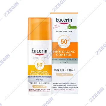 EUCERIN SUN Photoaging Control Tinted Light Нијансиран гел-крем за лице за заштита од сонце, со СПФ 50+, светла нијанса, 50 мл