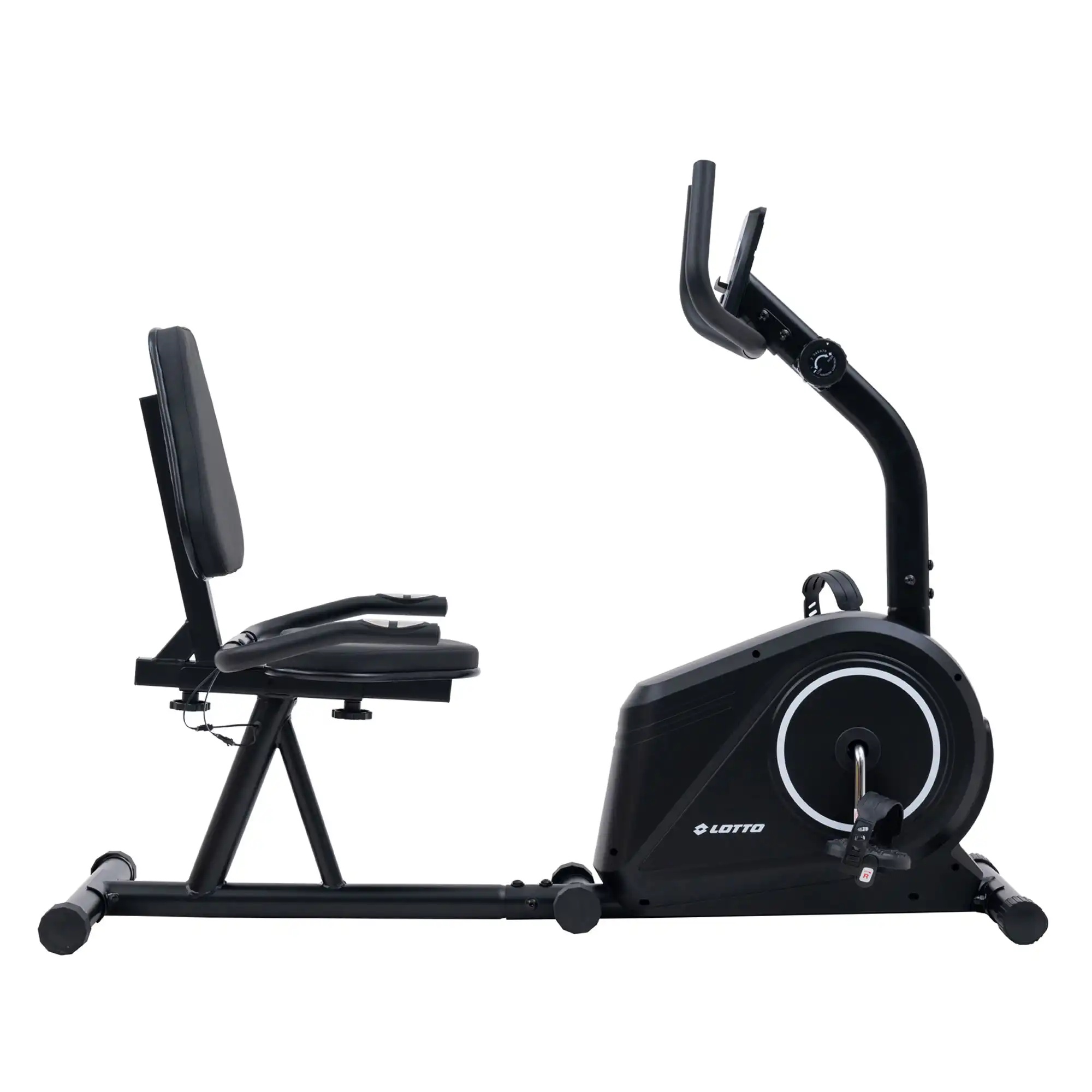 LOTTO COMODO 200 • Магнетен легнат статичен велосипед • Магнетен систем на кочење • 4kg замаец • 8 нивоа на отпор • Функции на компјутерот: време • брзина • дистанца • калории • срцев пулс • одометар • Поддршка за ставање таблет или мобилен телефон • Сензори за мерење срцев пулс • Прилагодливо седиште • Комфорни педали со сигурносна заштита и нелизгачки материјал • Можност за поврзување преку Bluetooth со Fit Show апликациja • Максимална тежина на корисникот 120kg • Димензии во склопена состојба 138x55x107 cm • Тежина 24кг