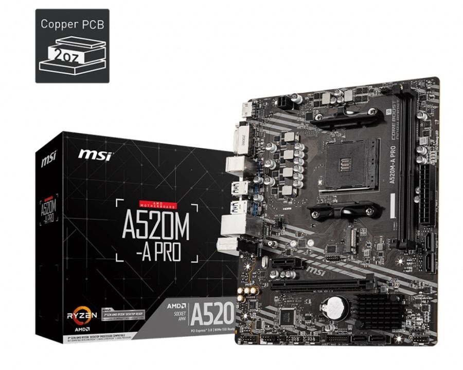 MB MSI Pro A520M-A AM4 mATX DDR4 4600Mhz 1xM.2 HDMI/DVI