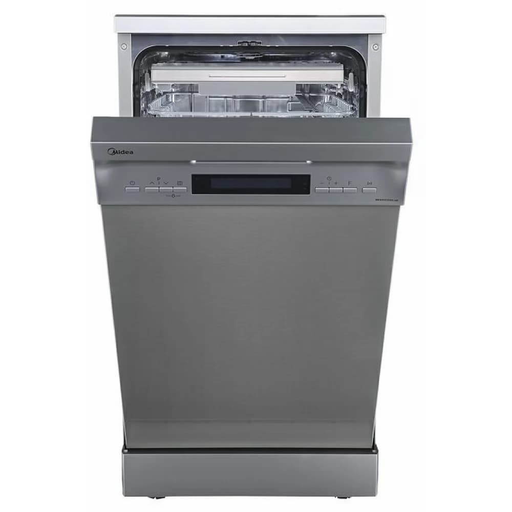 MIDEA MFD45S350S.1-HR • Самостоечка машина за миење садови • Трета кошница • Сребрена боја • ЛЦД Дисплеј • Ширина 45цм • Капацитет 10 сетови • 9 програми • Автоматско отворање на вратата • Power Wash функција • Антибактериски филтер • Горна кошница прилагодлива по височина • Три прскалки • Тајмер до 24 часа • Заштита од деца • АКВАСТОП заштита од прелевање • Бучност 44dB • Годишна потрошувачка на ел. eнергија на 100 циклуси 59kWh • Нова Ц енергетска класа • Димензии ВxШxД 81.5x45x60 цм
