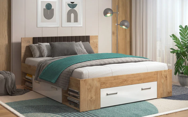 Pej – Спална за душек 160/200 , златен даб + бел сјај