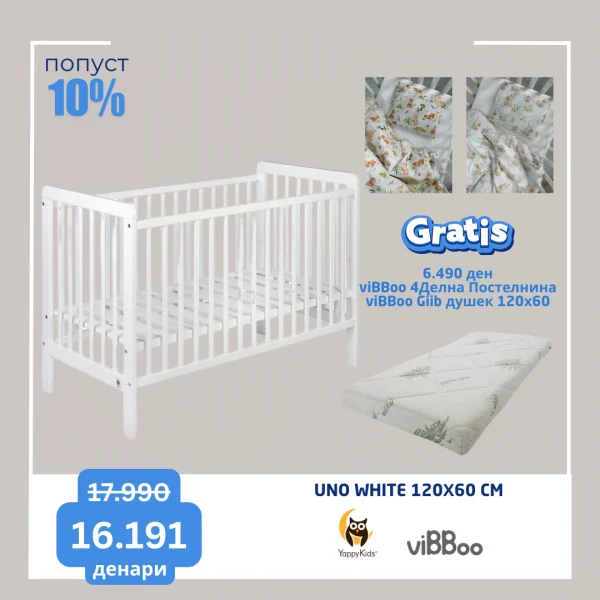 Искористете ја оваа неверојатна понуда и купете Yappy Kids креветче и добијте гратис viBBoo душек Giib + 4 Делна viBBoo постелнина од лимитираната серија!